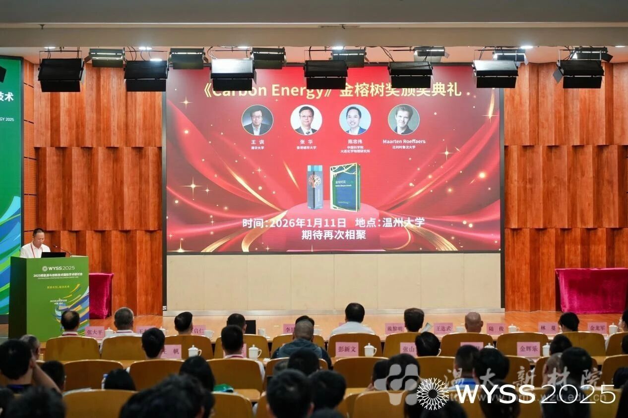 开幕式现场亮点纷呈。《Carbon Energy》(碳能源)・金榕树奖获奖名单正式揭晓,清华大学王训教授、香港城市大学张华教授、中国科学院大连化学物理研究所陈忠伟研究员、比利时鲁汶大学 Maarten Roeffaers 教授 4 位学者获此殊荣,颁奖典礼将于 2026 年 1 月 11 日举行。《Carbon Energy》・优秀青年编委奖同步颁发,Wiley出版集团合作总监张大平与该杂志执行编辑金辉乐,为西北大学孙涛、郑州大学尚会姗、温州大学肖遥等 6 位青年学者颁奖,激励青年力量深耕碳能源领域。